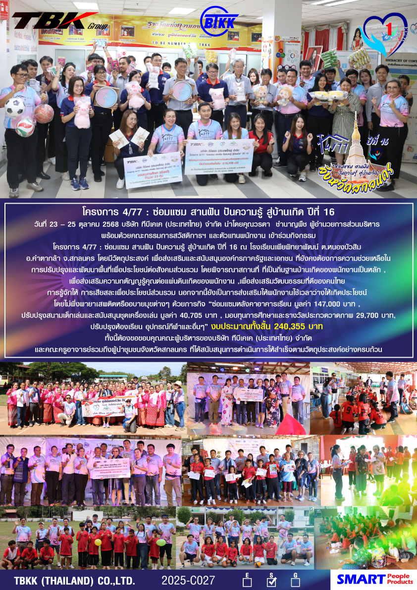 โครงการ 4/77 : ซ่อมแซม สานฝัน ปันความรู้ สู่บ้านเกิด ปีที่ 16