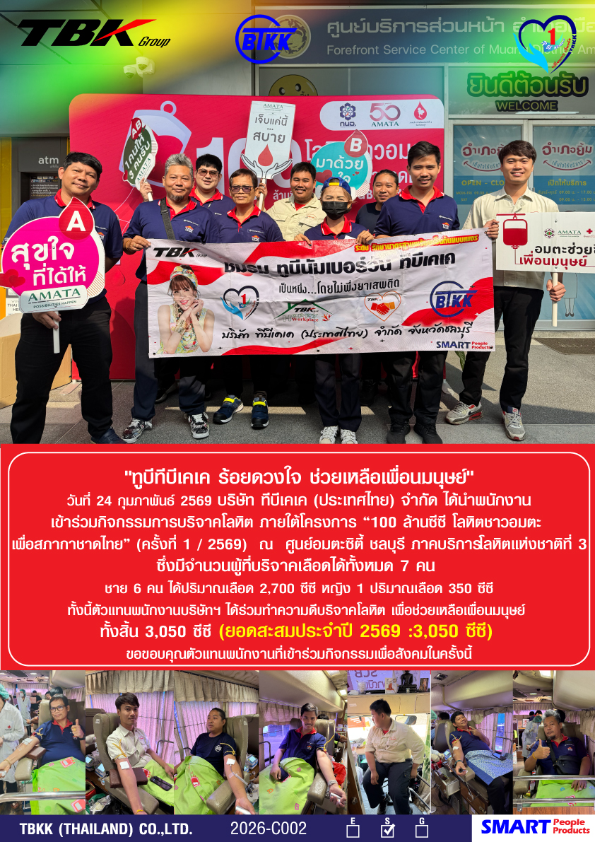 วันที่ 24 กุมภาพันธ์ 2569 บริษัท ทีบีเคเค (ประเทศไทย) จำกัด ได้นำพนักงาน