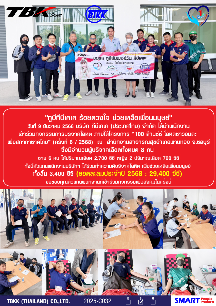 วันที่ 9 ธันวาคม 2568 บริษัท ทีบีเคเค (ประเทศไทย) จำกัด ได้นำพนักงาน