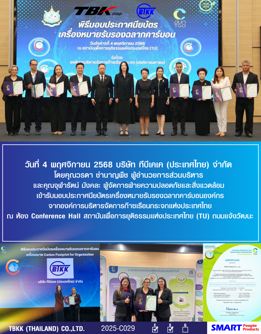 วันที่ 4 พฤศจิกายน 2568 บริษัท ทีบีเคเค (ประเทศไทย) จำกัด