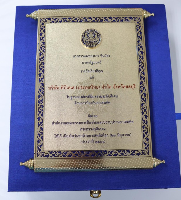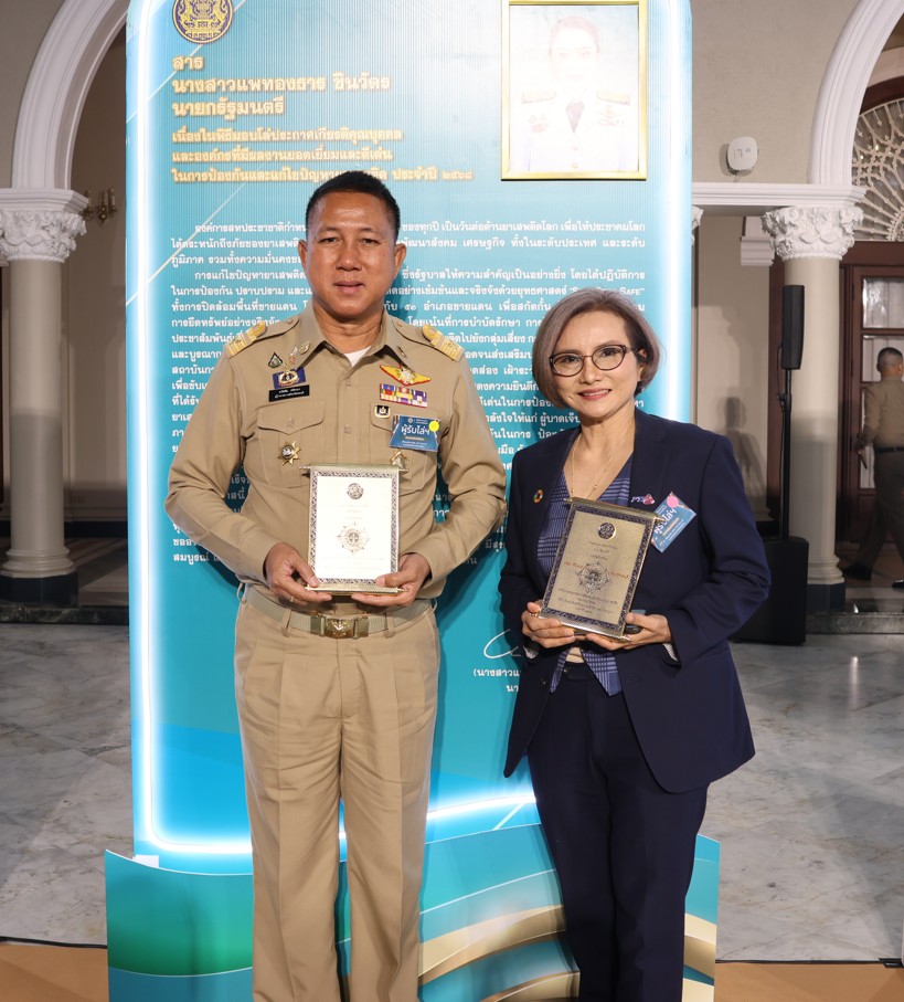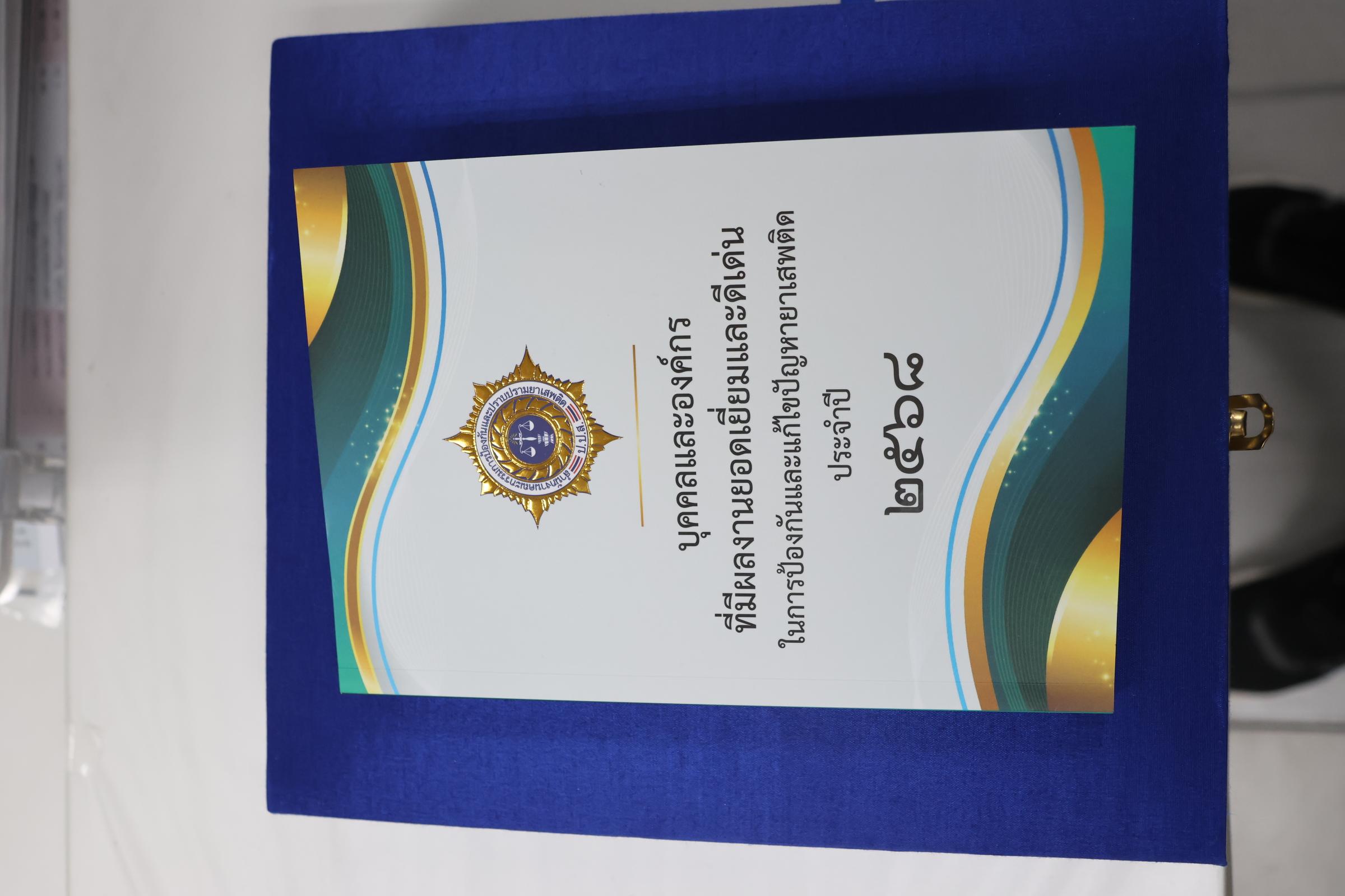 และรับมอบรางวัลเกียรติคุณในฐานะองค์กรที่มีผลงานระดับดีเด่นด้านการป้องกันยาเสพติด