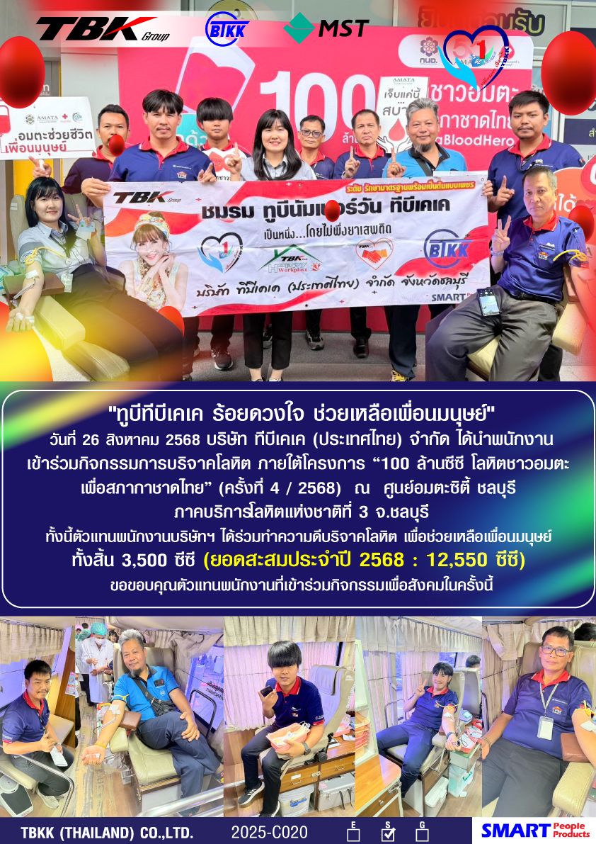 วันที่ 26 สิงหาคม 2568 บริษัท ทีบีเคเค (ประเทศไทย) จำกัด ได้นำพนักงาน